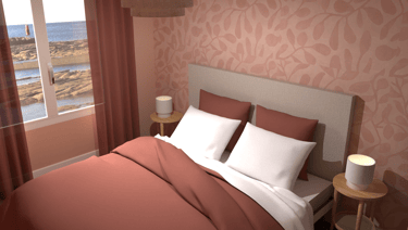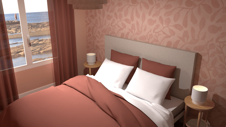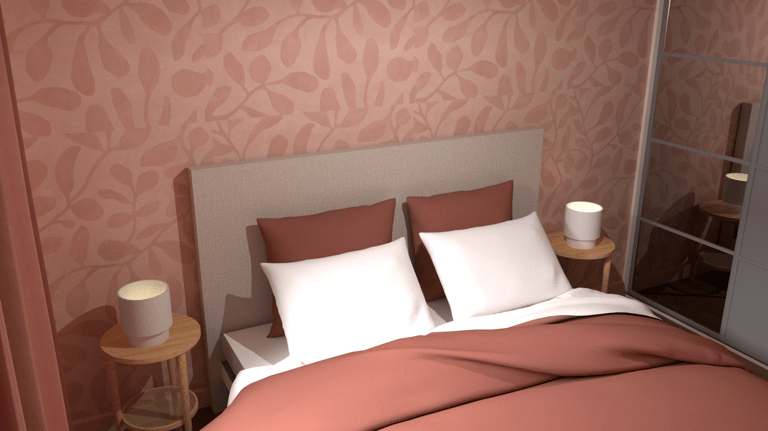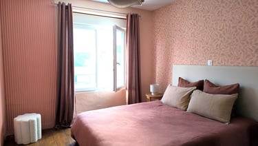 Une chambre chaleureuse et unique, se mariant avec la nouvelle décoration de la pièce d'à côté